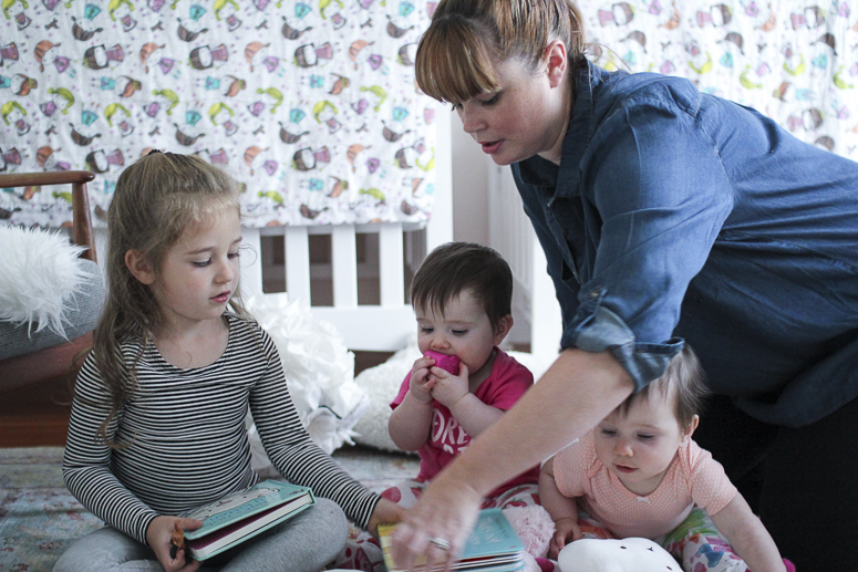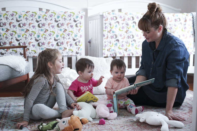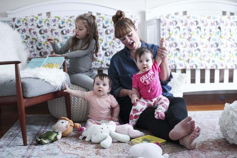 Becoming a mom of three hit me like a ton of bricks. Going from one to three was a shock in every way. How was I going to care for three kids? Would I ever leave the house again? Can I love each of them as much as they deserve? And when the heck will I sleep? The list of uncertainties was long. As time has gone on, and these questions have been answered {The answers are: you just do, yes you will, you absolutely can and do, and when ever you can} and being a family of five has become the new norm, there have been new struggles and obstacles to overcome. A big one for me has been shifting gears into being a full time stay at home mom. I was a full time at home mom before the twins, but my mother in law could easily handle watching Madelyn on her own when I worked, which was part time and based out my house.